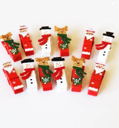 Lot de 12 pinces à linge en bois de 5 cm sur le thème de Noel ( renne, père Noel , bonhomme de neige ) pour personnaliser , vos serviettes , invitation , sapin de noel …
