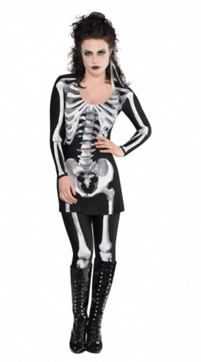 une tunique et un legging en lycra de belle qualité imprimés de motifs squelettes très réalistes .