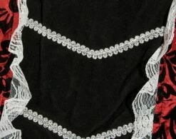 un serre tête avec roses rouges et dentelle complète la tenue .