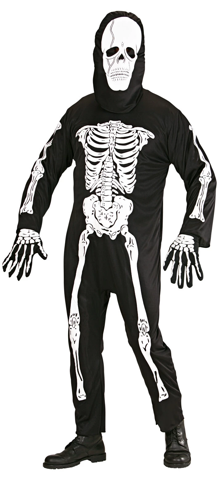 Le déguisement comprend une combinaison en jersey imprimée de motifs squelettes réagissant à la lumière noire .