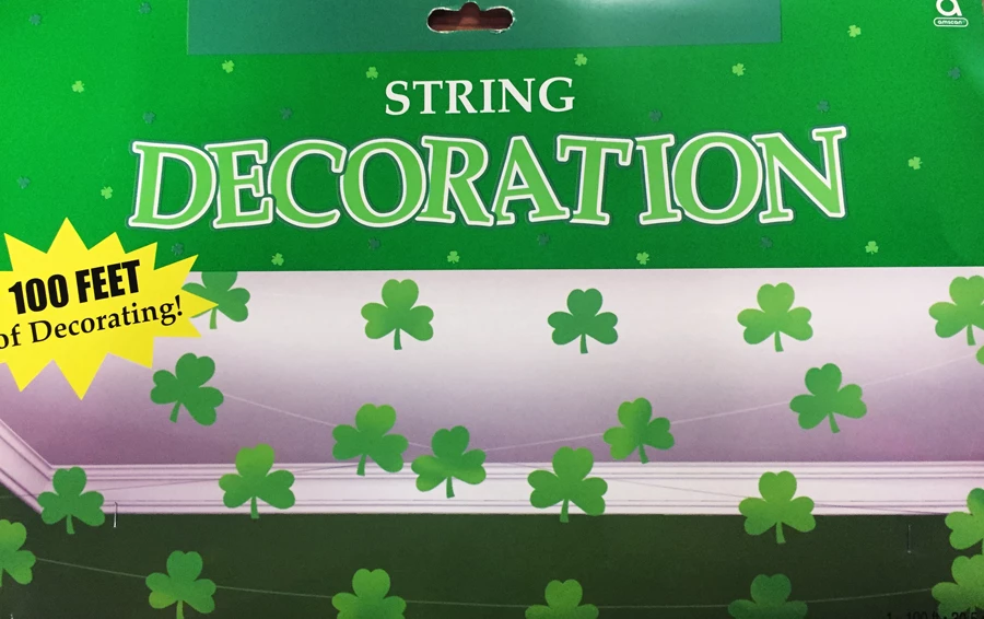 Guirlande fil de 30 m de long avec une série de trèfles de 10 cm x 10 cm en papier métallisé vert idéale pour vos décorations de la saint Patrick