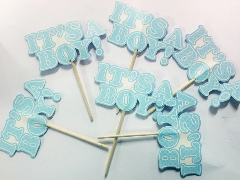 Lot de 20 mini piques en bois décorées sur le thème fille » it’s a boy » Parfait pour finaliser la décoration de vos cup cake , gâteaux , muffin lors des baby shower , baptême , anniversaire