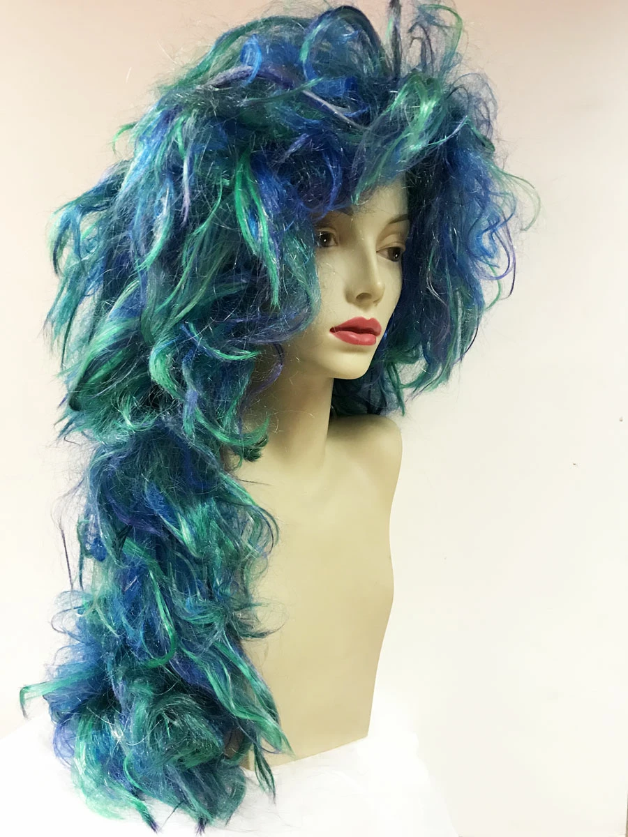 Perruque longue en camieu de bleu et vert idéale pour finaliser un déguisement de sirène .