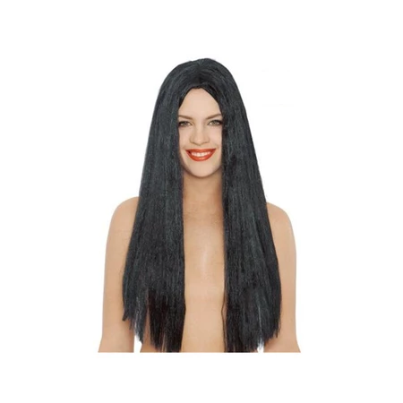Perruque longue noire pour adulte pour fêtes sur le thème hippie ou médiéval.