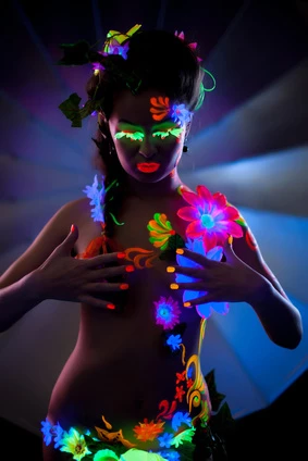 Aquacolor , maquillage visage et corps régissant à la lumière noire . S’enlève à l’eau et au savon recharge de 4 ml